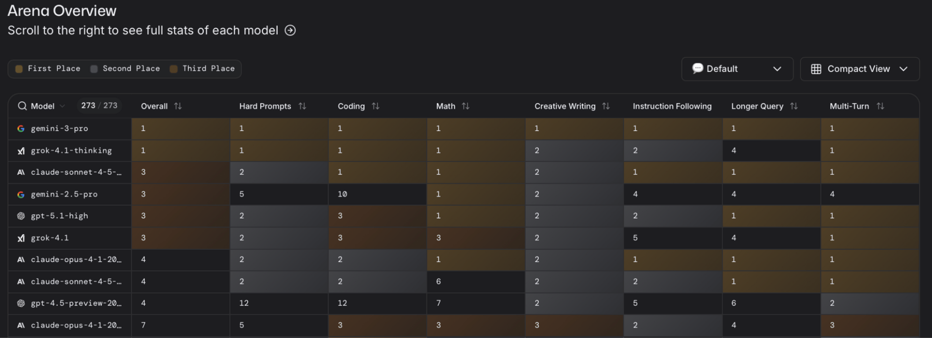 Gemini 3 Pro is currently tied for 1st place on LMArena.